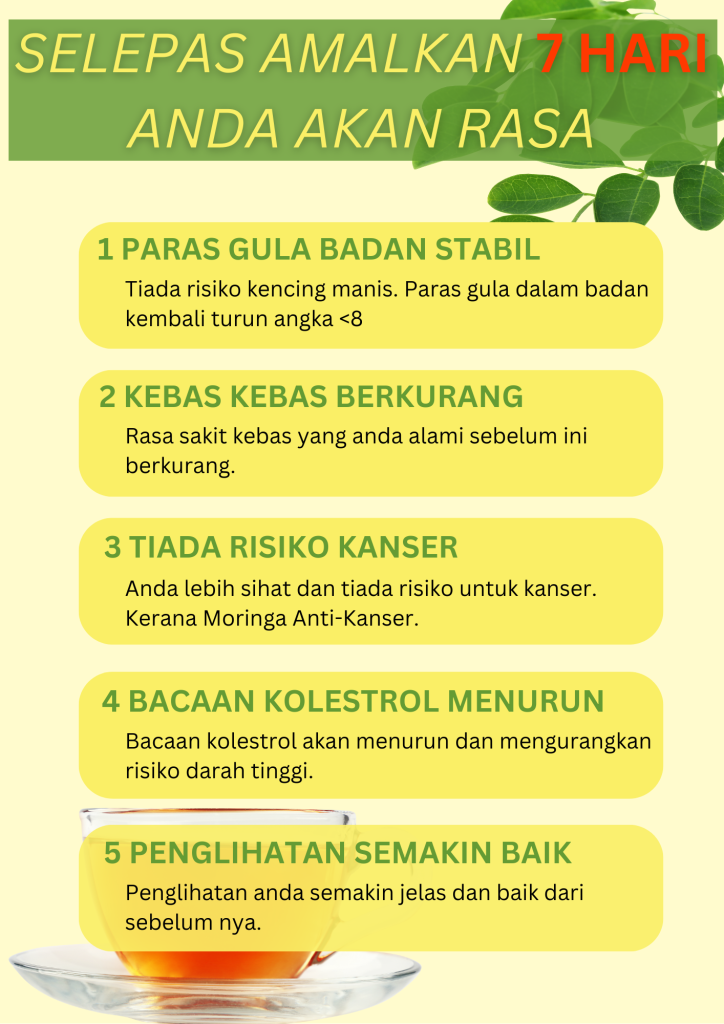 Hanya 2 Cawan Sehari Mampu Membantu Rawat Masalah Diatas. Moringa Diiktiraf Oleh World Health Organization WHO Sebagai “POKOK AJAIB”