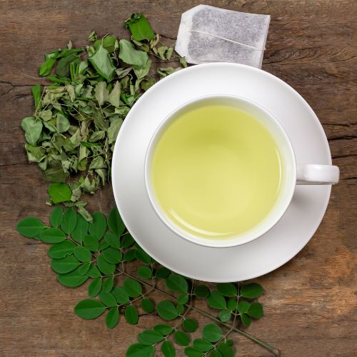 Moringa kaya dengan nutrisi yang penting untuk kesihatan kulit, seperti vitamin A dan E yang membantu menjaga kulit kekal sihat dan bercahaya.
